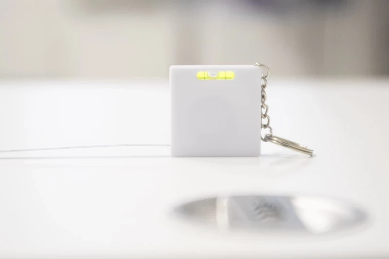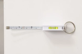 Breloczek do kluczy z miarką o długości 1 m i poziomicą.