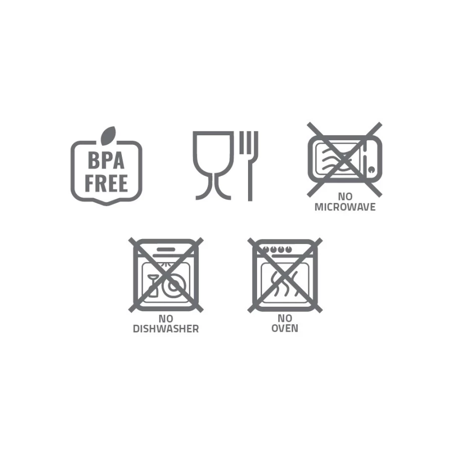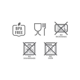 Butelka nie nadaje się do mycia w zmywarce. Sprzedawca nie ponosi odpowiedzialności za rodzaj używanej chemii do czyszczenia, co może powodować uszkodzenia znakowania, w tym rozmazywanie, degradację powierzchni itd.